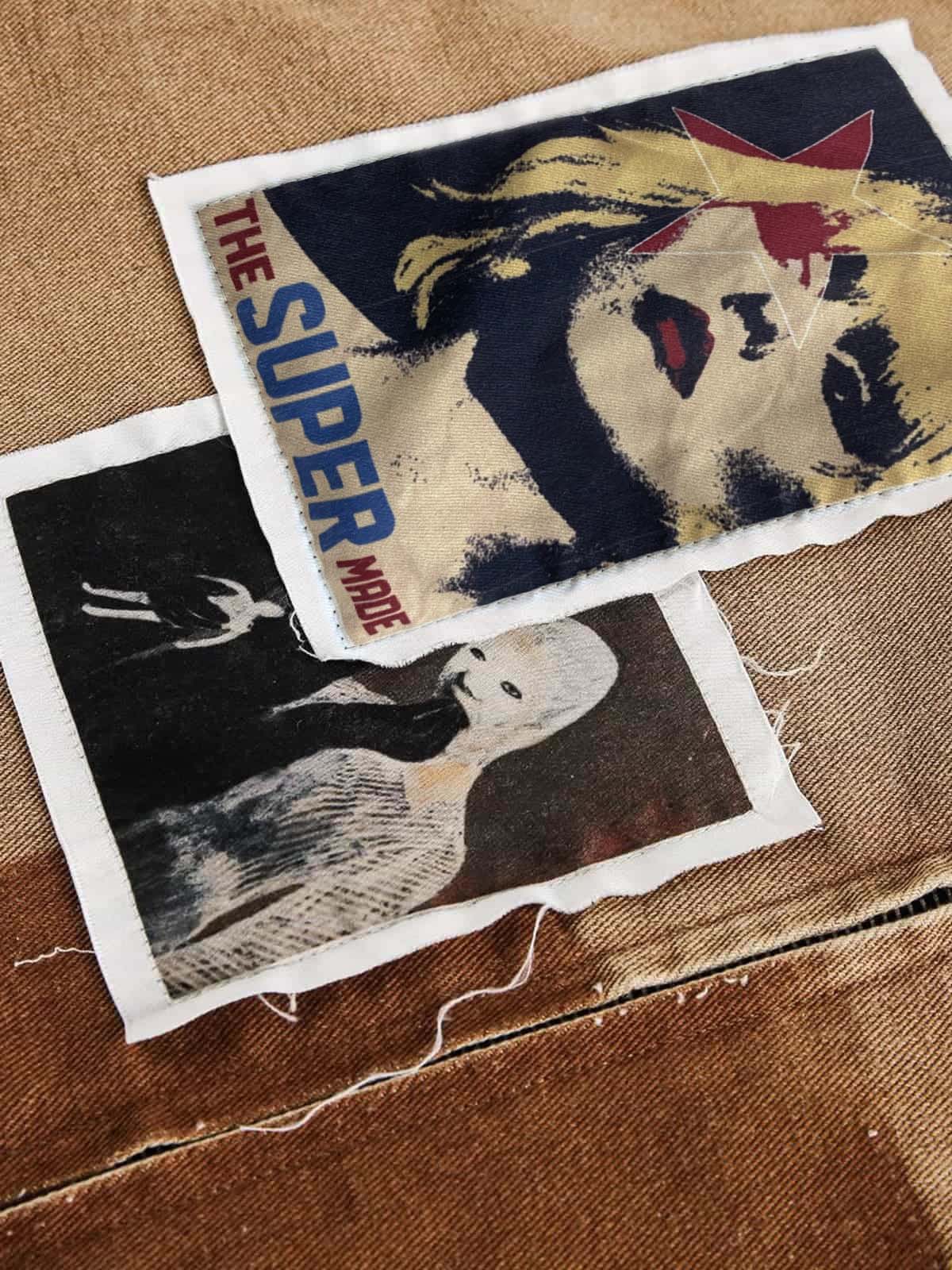 • Design Elements: Vibrant graphic patches, distressed details, contrasting sleeve colors