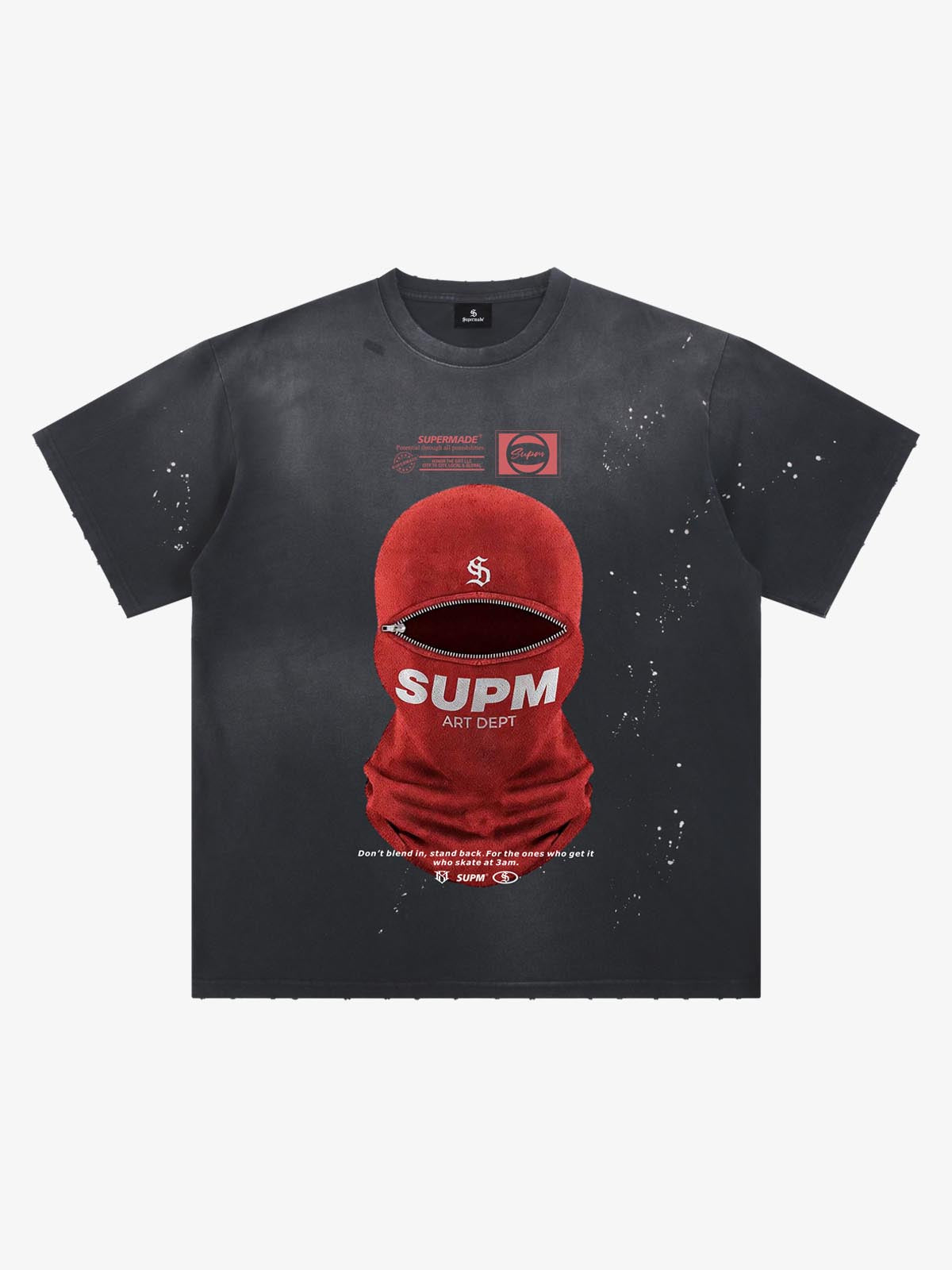• Unique splatter design adds edgy, artistic flair to the overall look