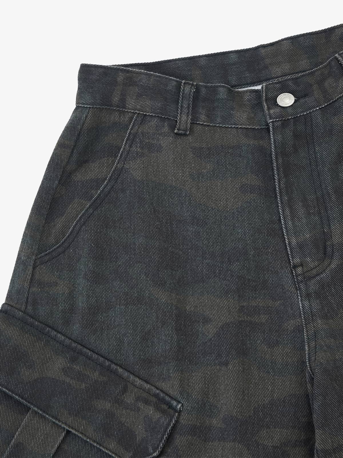 Retro Camo Multi-Pocket Cargo Barrel Pants