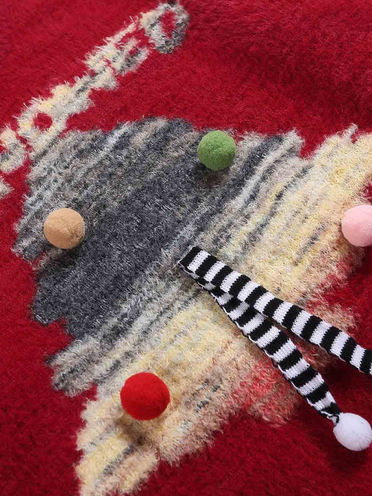 Retro Christmas Tree Embroidered Knit Sweater