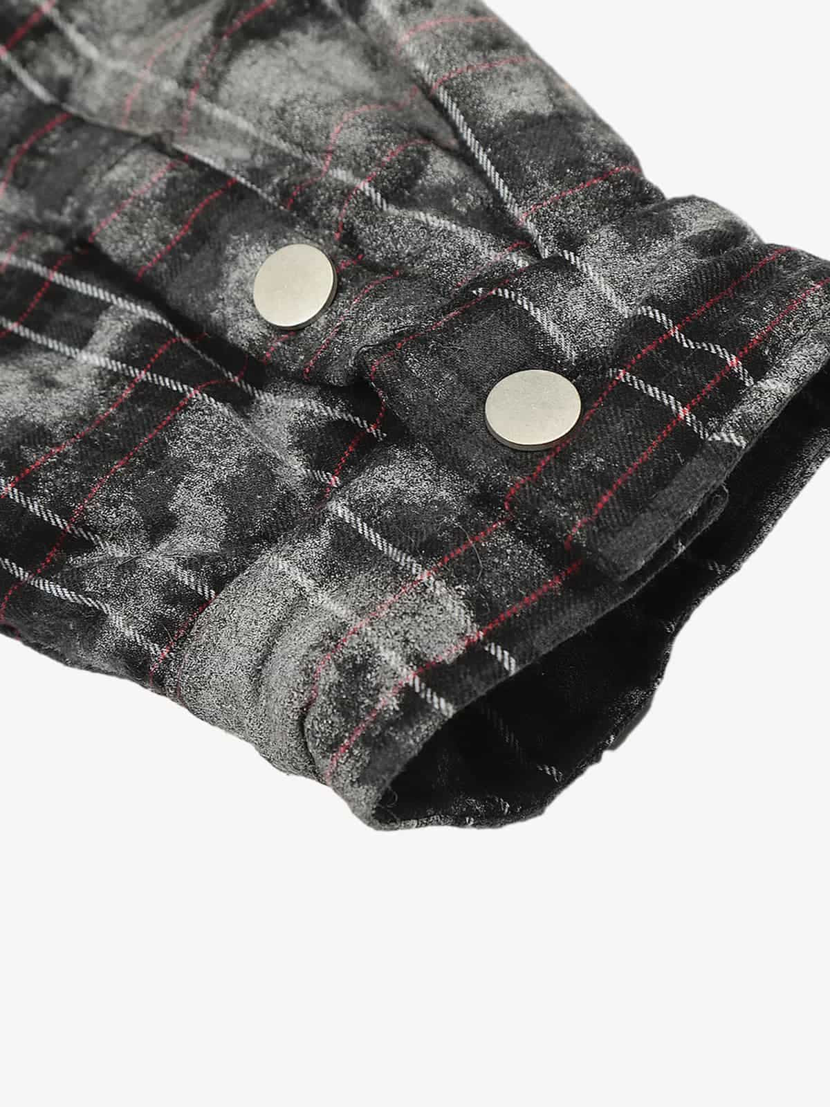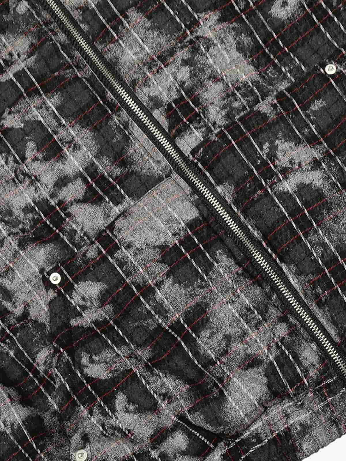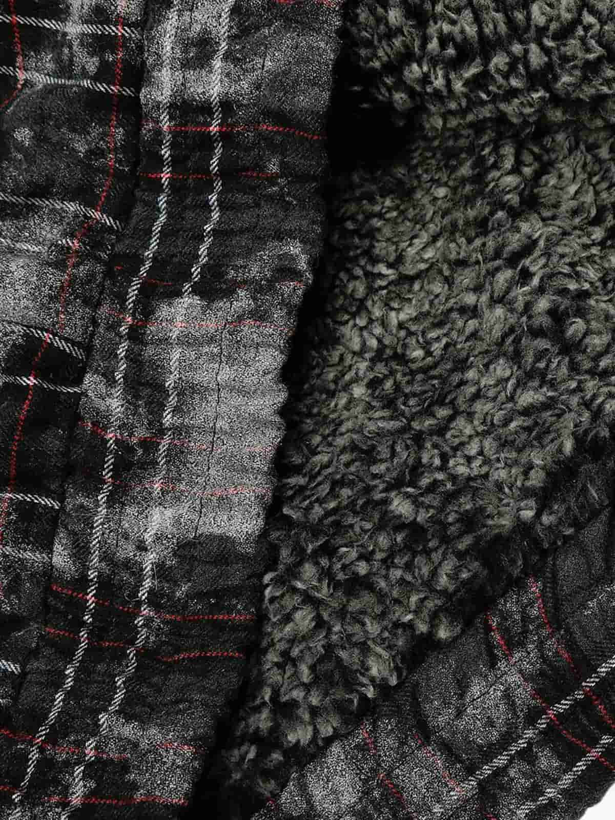 Retro Distressed Plaid Faux Fur Collar Padded Jacket