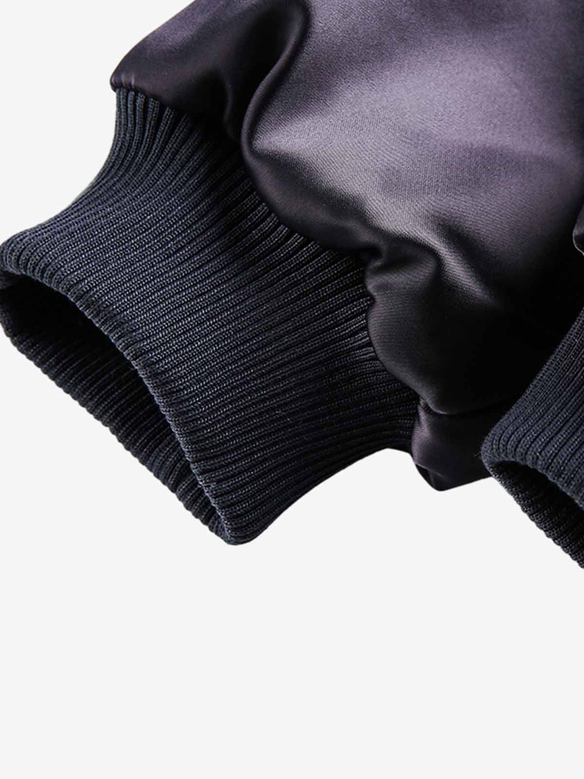 Retro Glossy Flight Baseball Collar Bomber Jacket