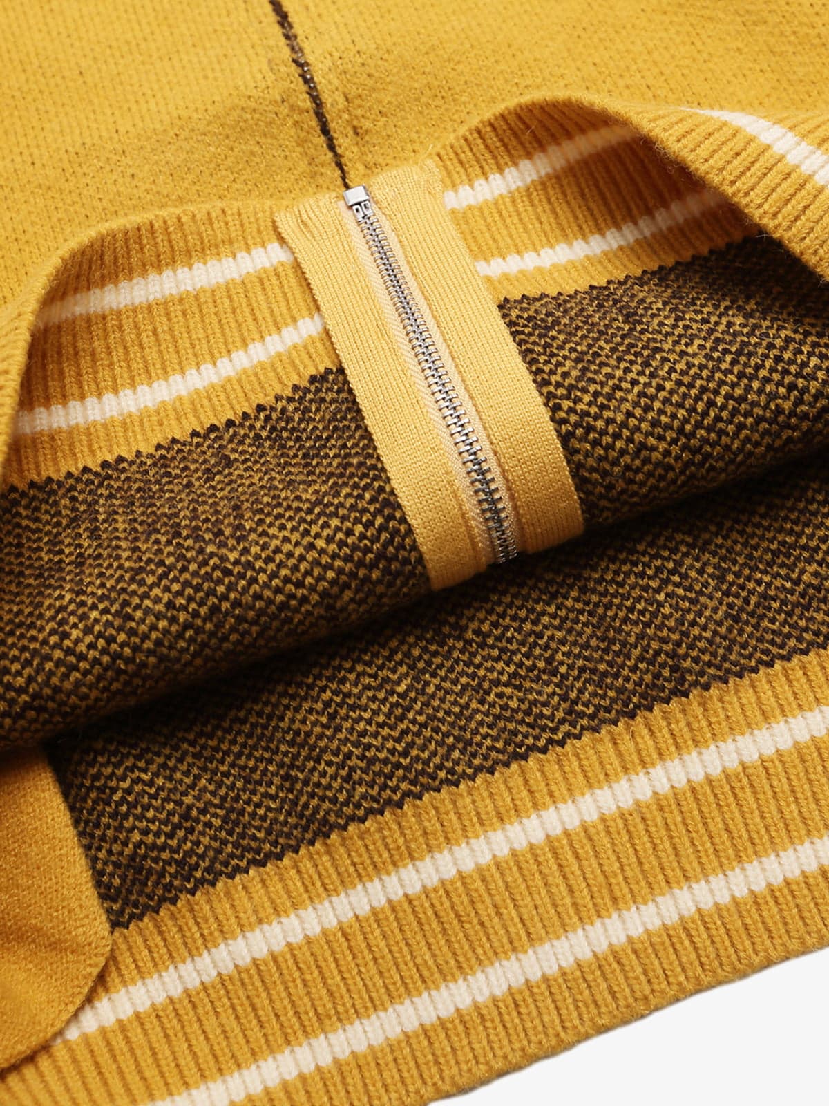 Retro Motorcycle Colorblock Knitted Zip-up Sweater Jacket