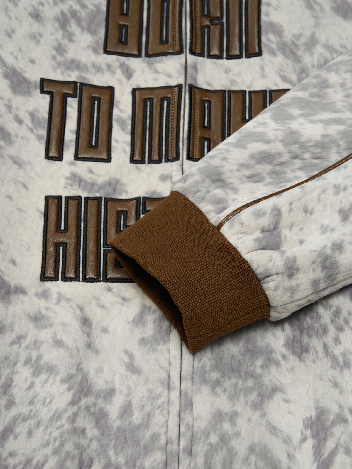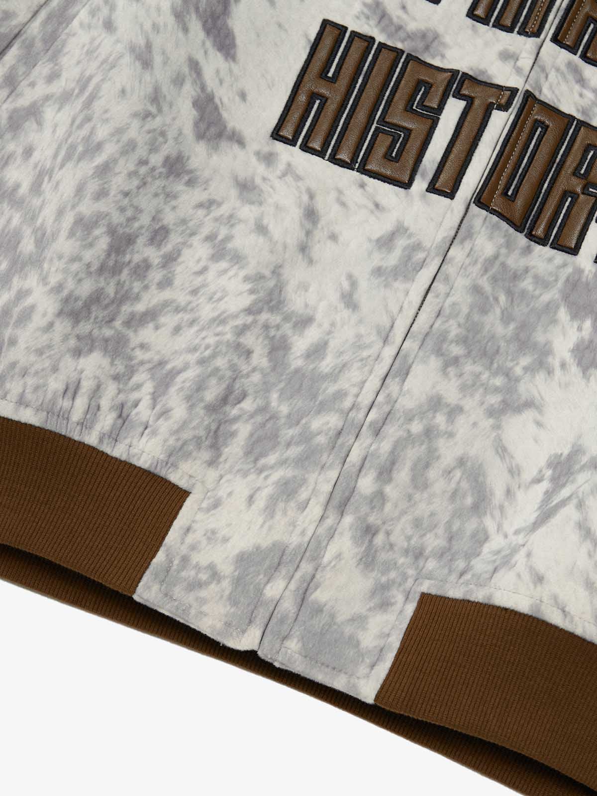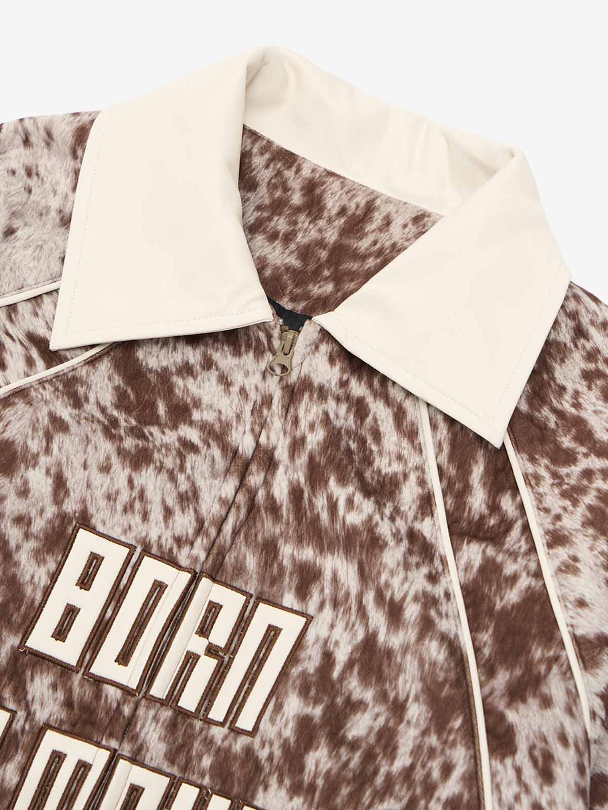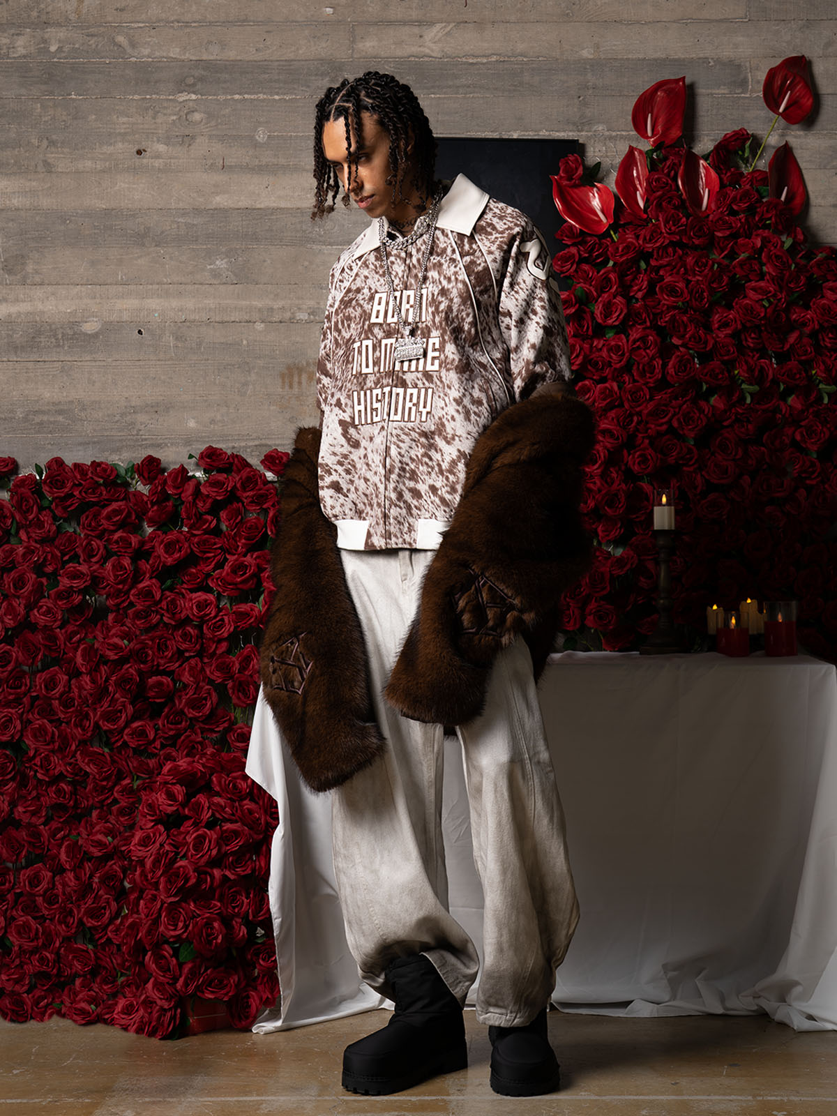 • Design Elements: Bold "Born to Make History" text print, cow print pattern, relaxed fit jeans