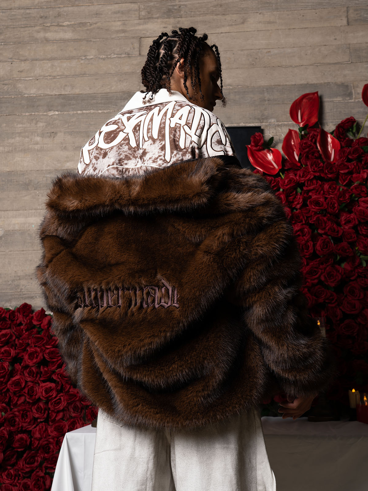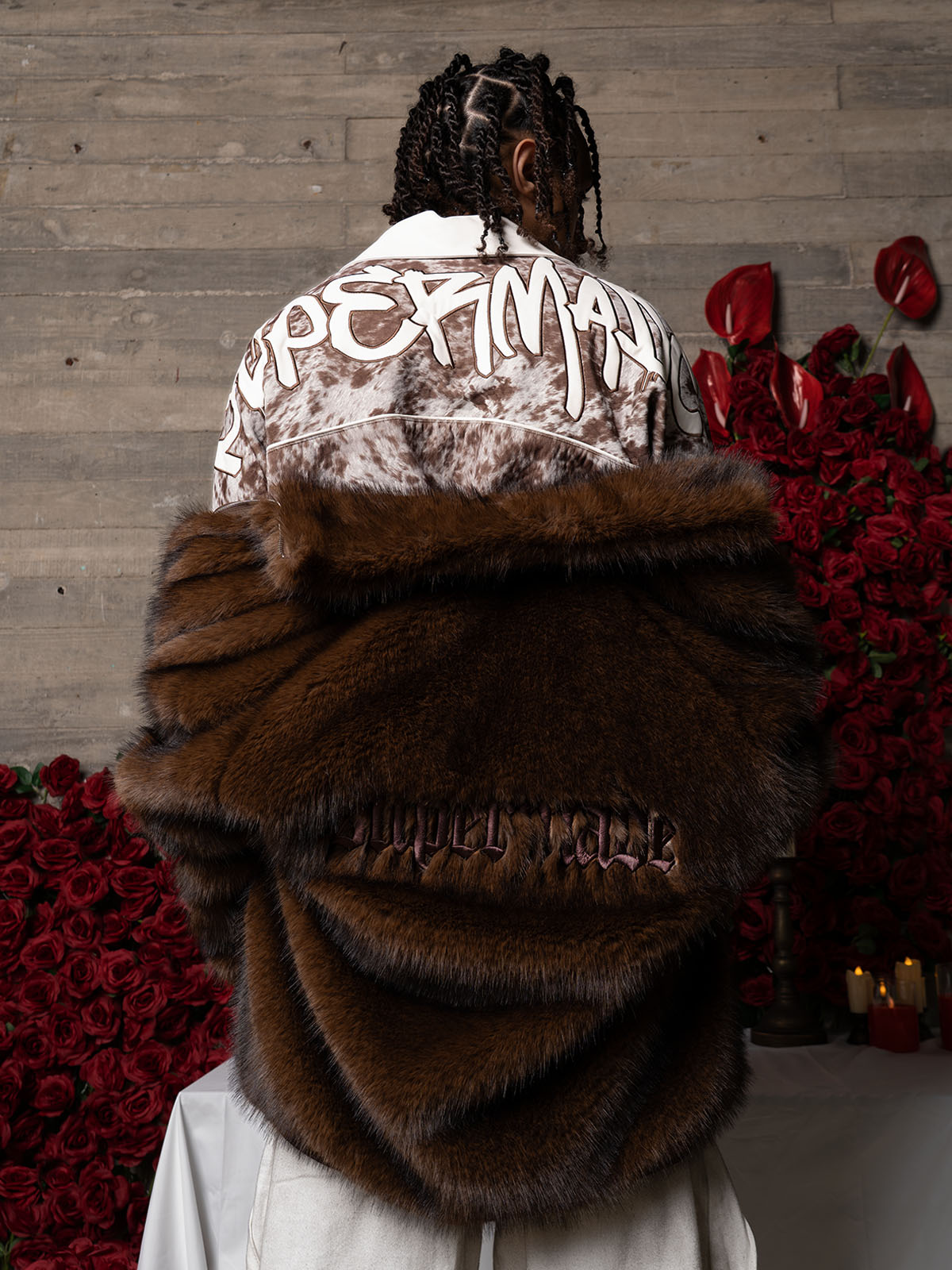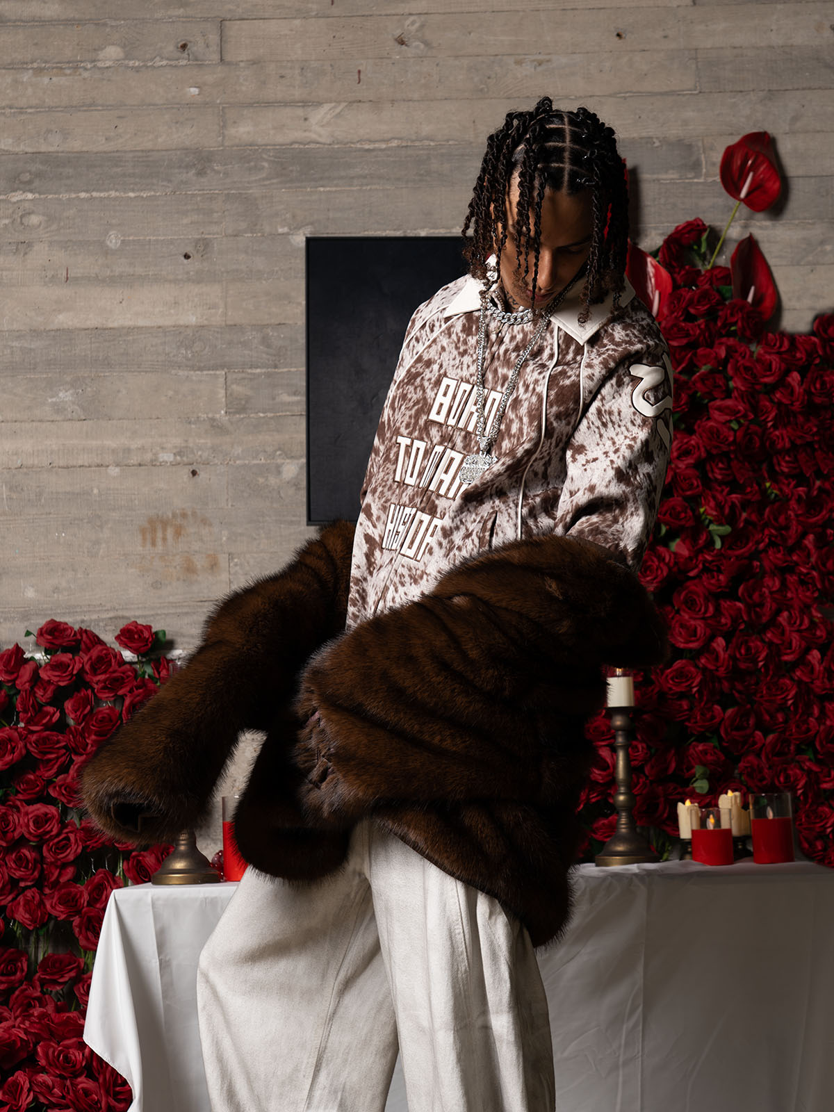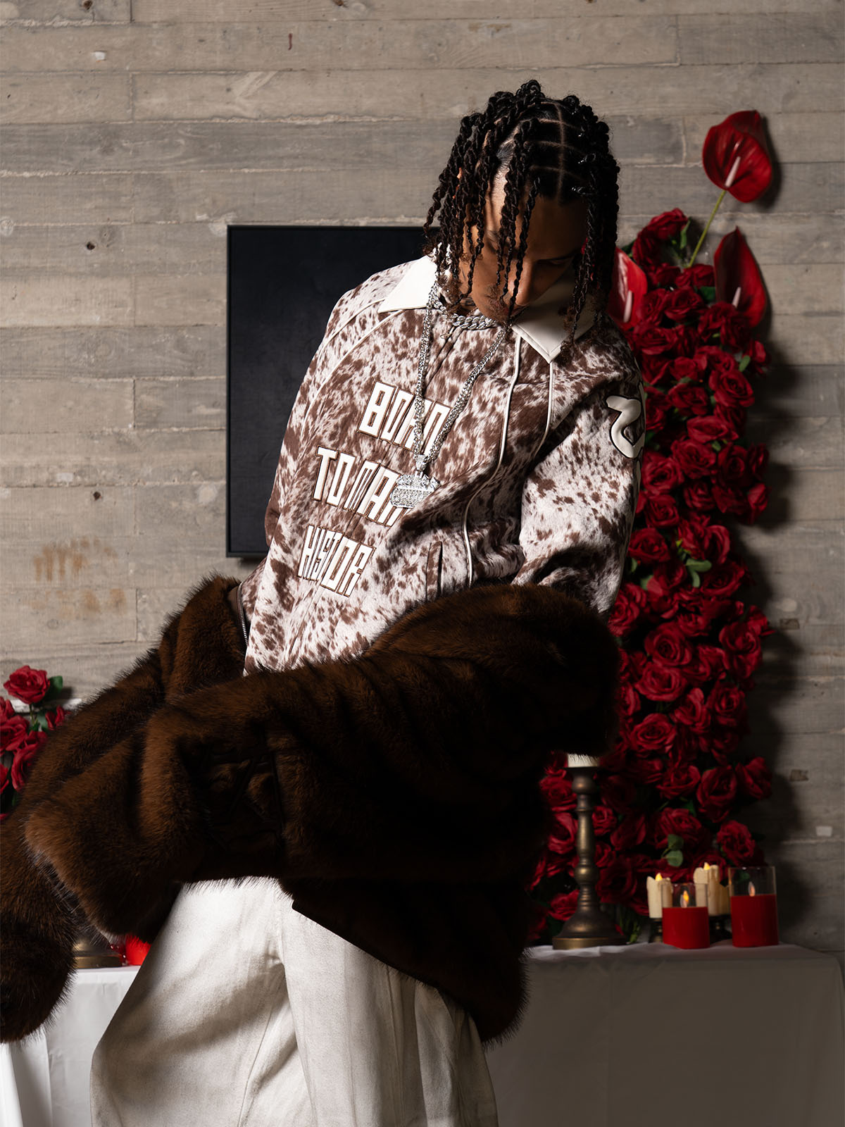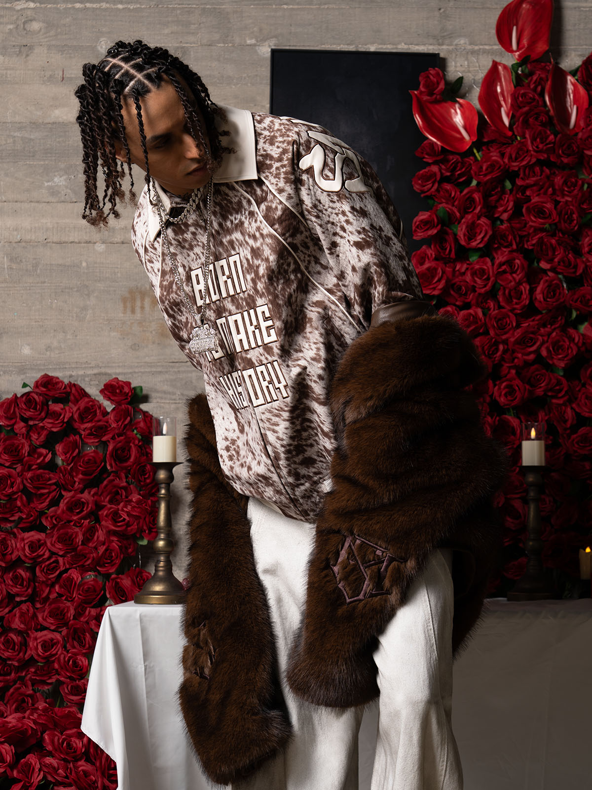 • Design Elements: Bold "Born to Make History" text print, cow print pattern, relaxed fit jeans
