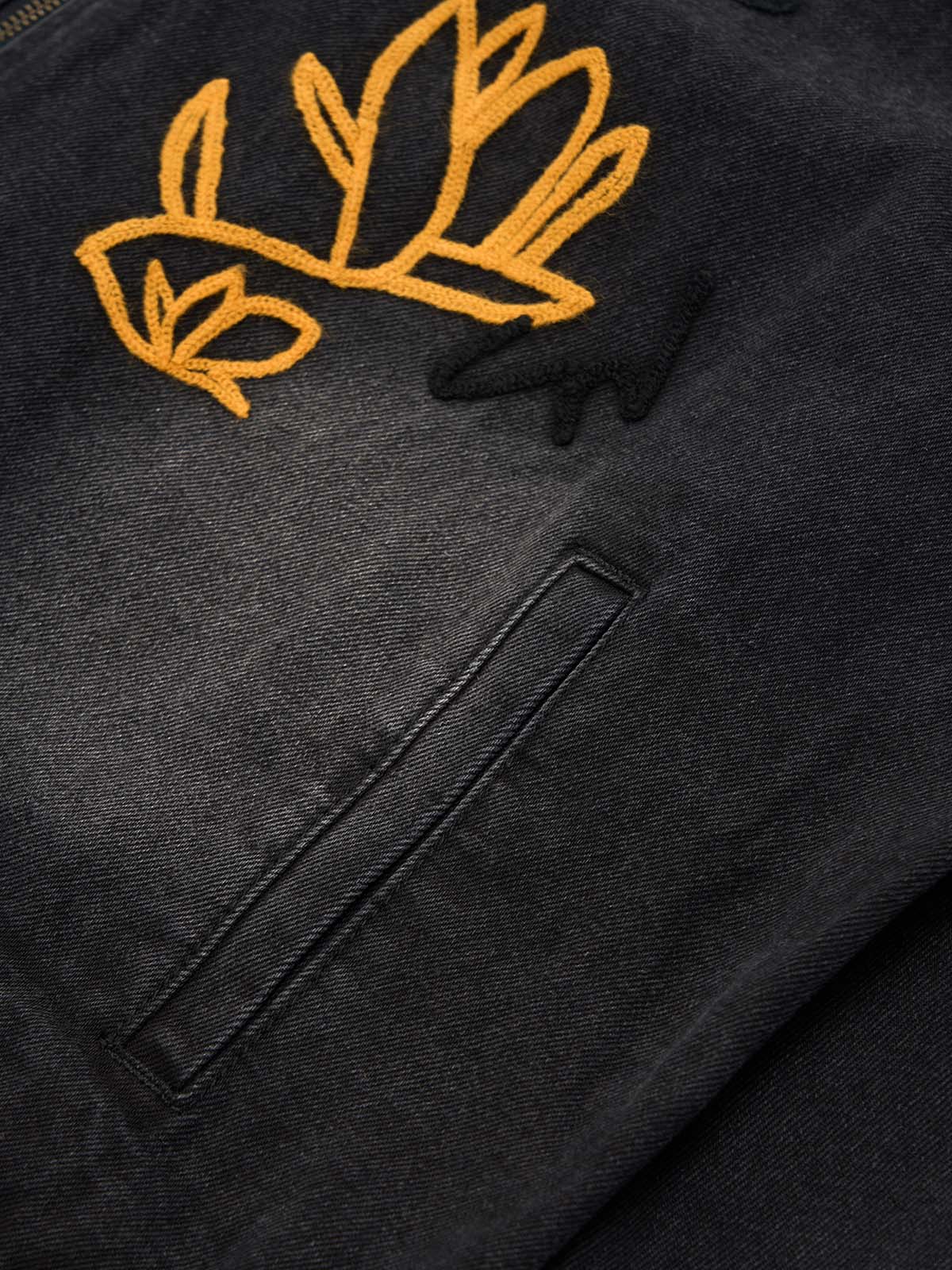Retro Street Floral Embroidery Washed Zipper Denim Jacket