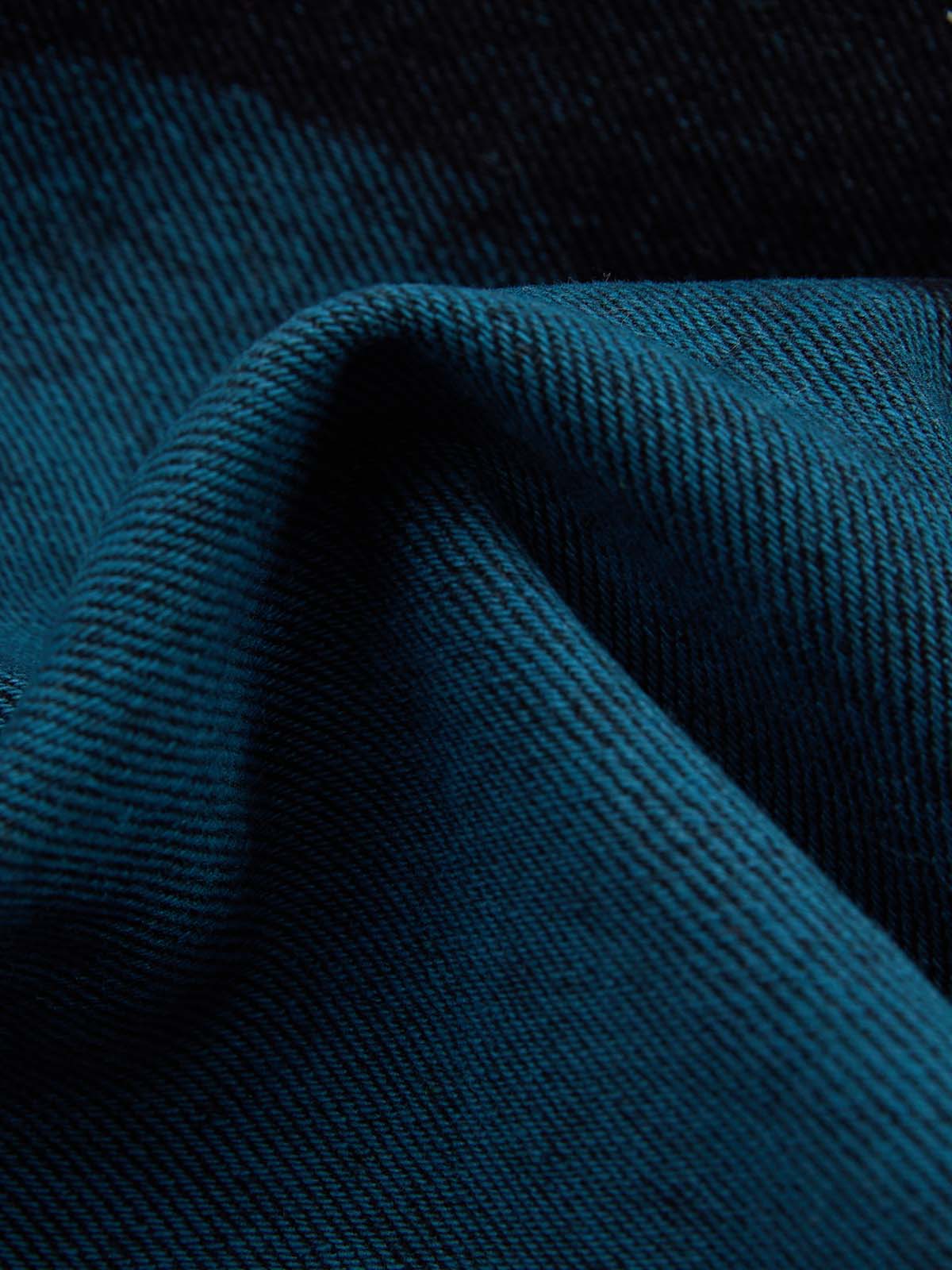 Constructed from denim, these baggy jeans feature a smoke gradient spray wash that creates a layered fade effect across the fabric. The surface remains clean and smooth, contrasted by raised cross patches for added texture. Designed with a relaxed straight drop and classic structure, the piece blends subtle visual depth with bold graphic placement.