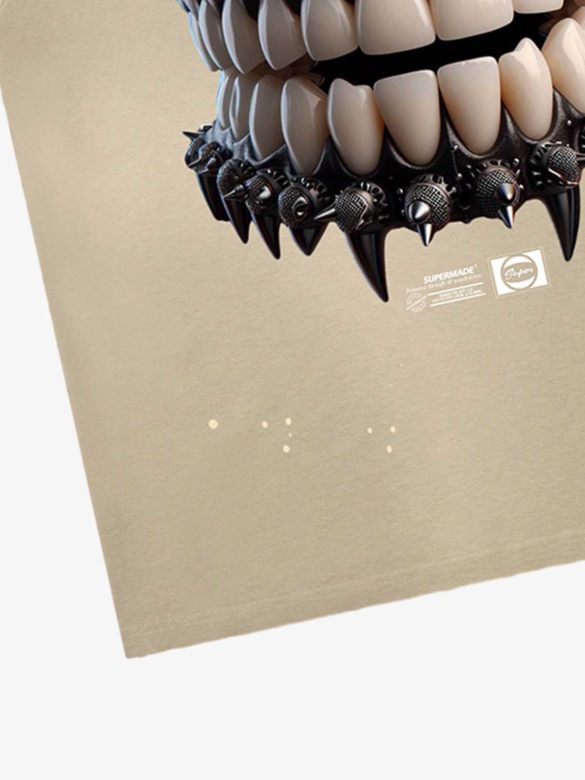 • Design Elements: Central snake coiled around a sword, distressed splatter effect, graphic text slogan
