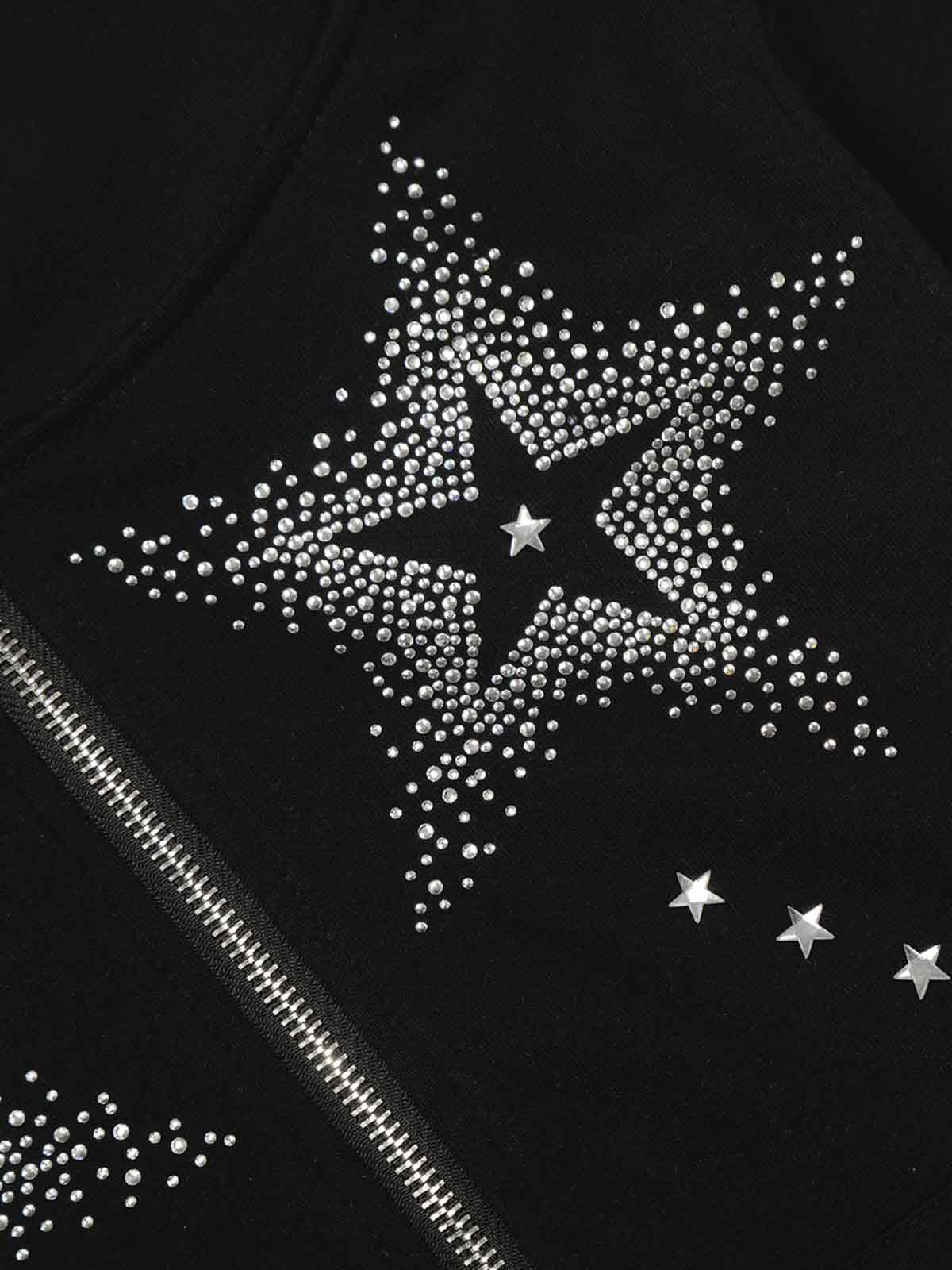 Star Rhinestone Cat Ear Zip-Up Hoodie