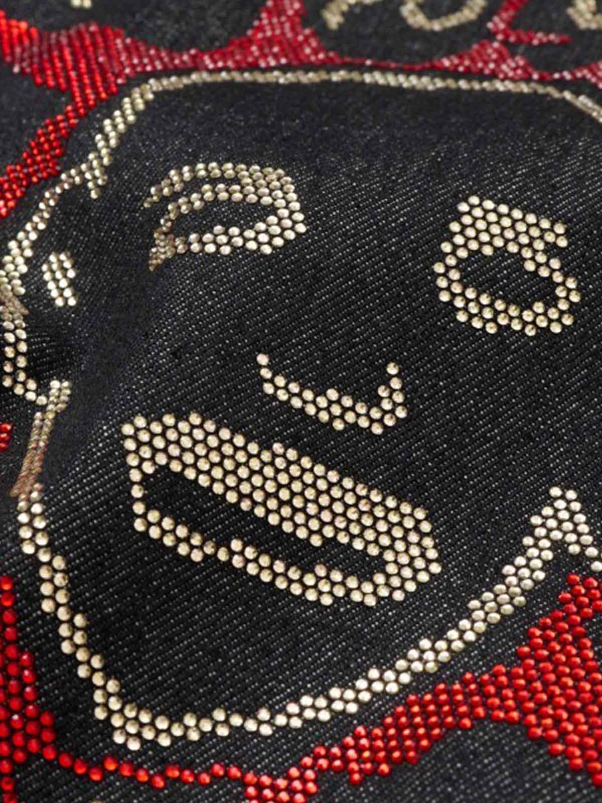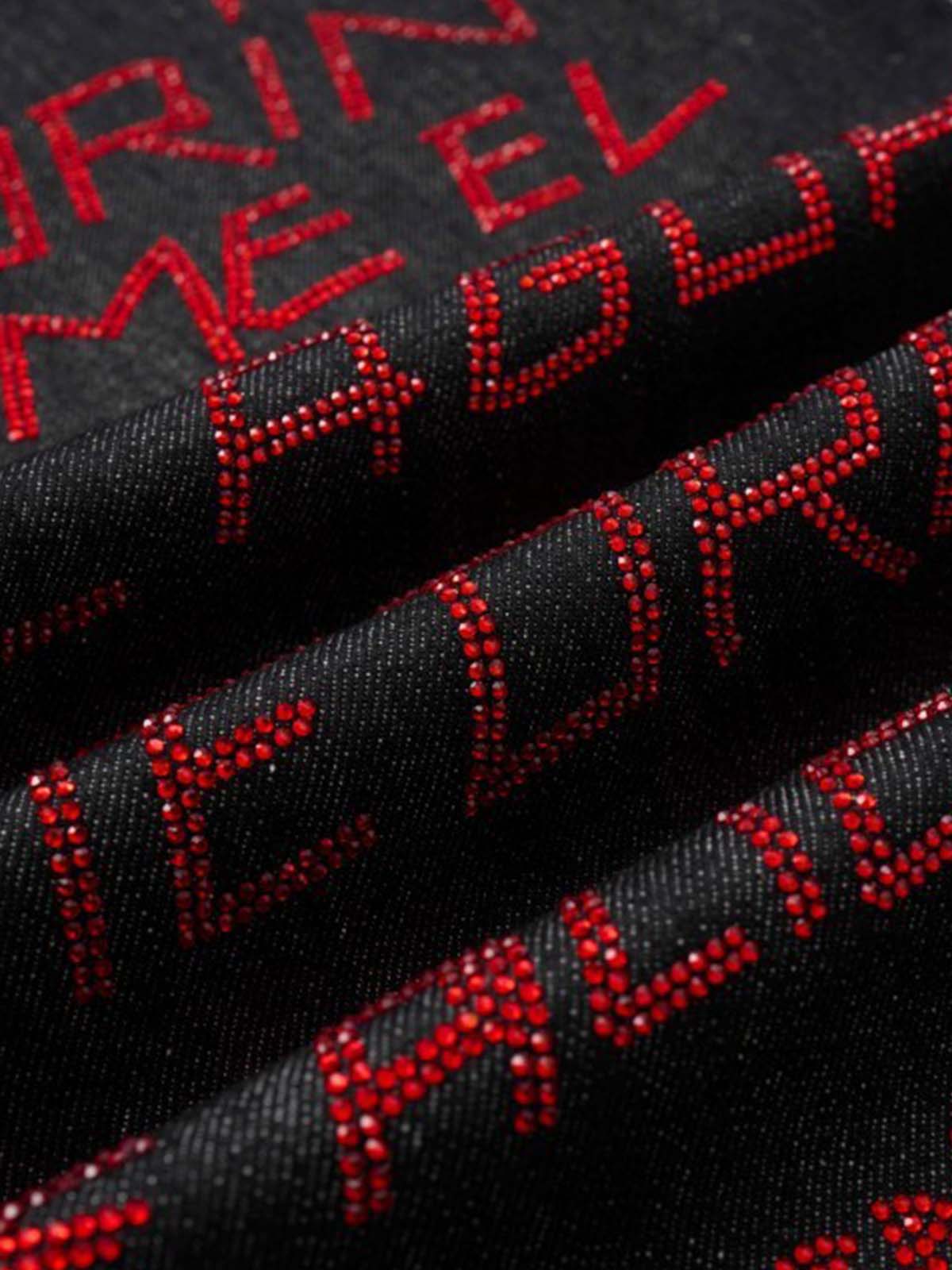 These statement denim jeans feature bold graffiti artwork combined with rhinestone letter details that add shine and texture to the design. The dark wash denim base highlights the red and white graphics across the legs, bringing a rebellious streetwear attitude. Finished with a relaxed wide leg silhouette that delivers comfort while keeping the look expressive and eye-catching.