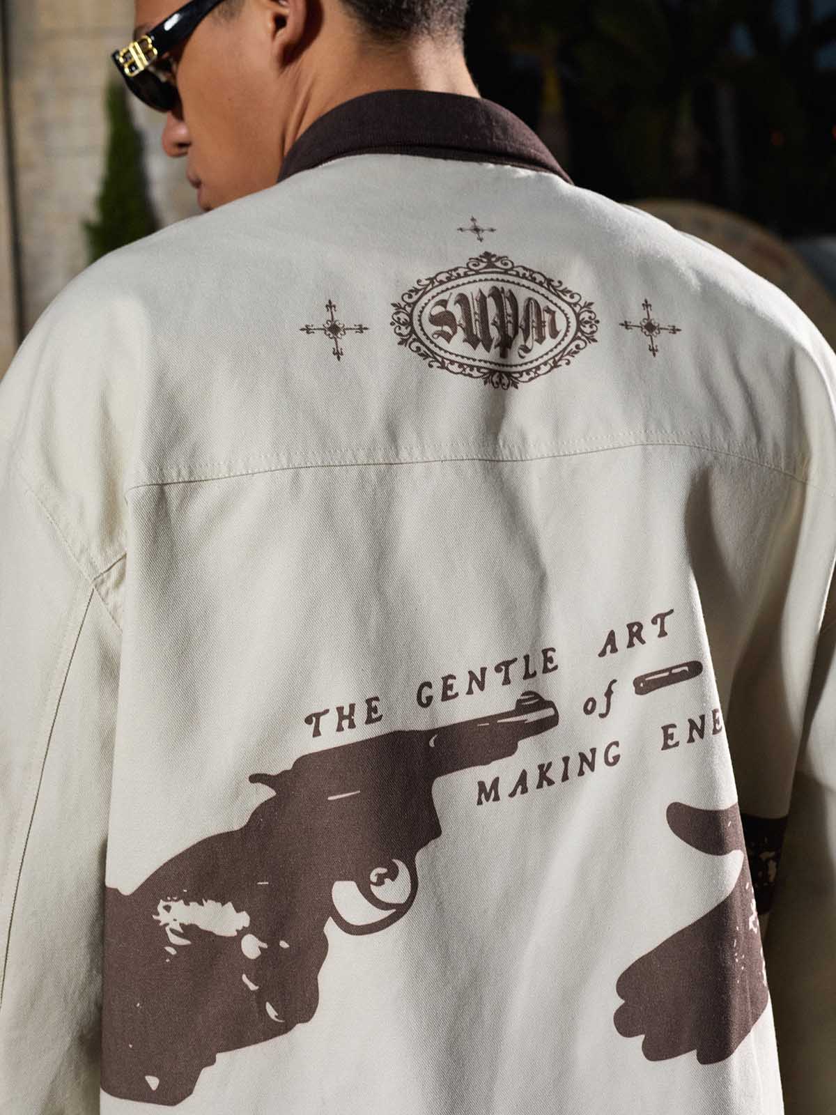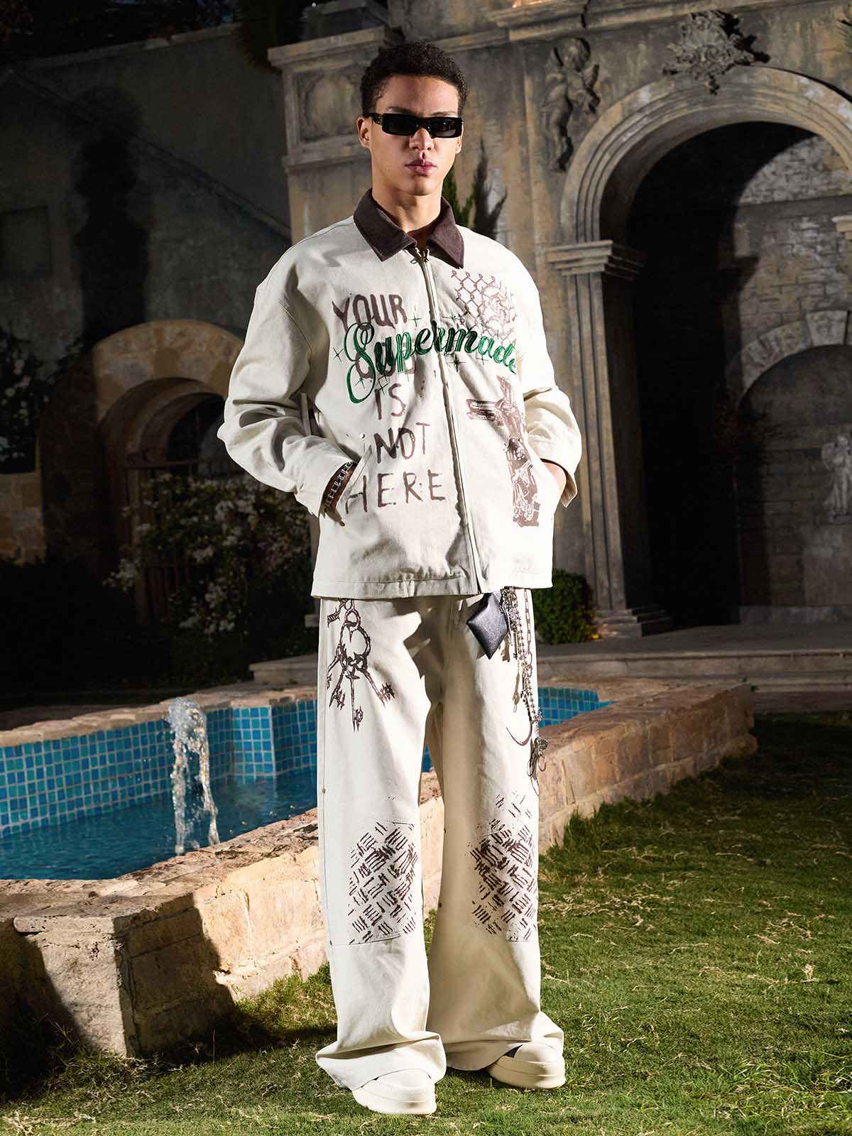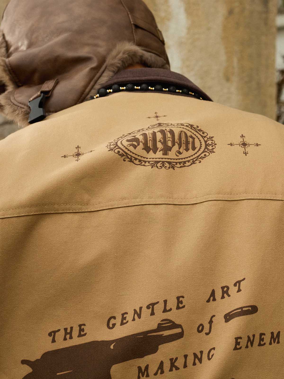 Bold slogan embroidery adds attitude without looking overdesigned