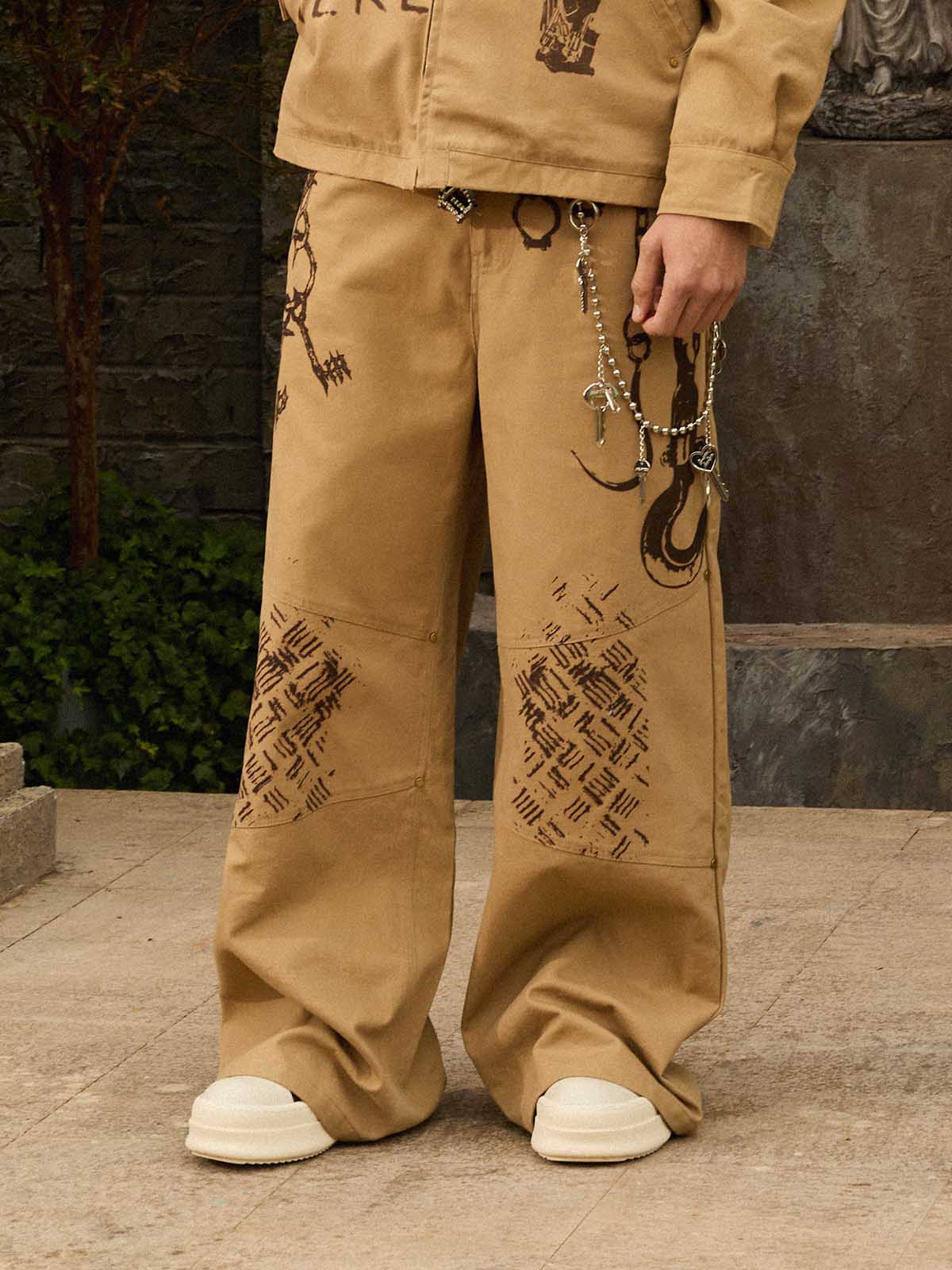 RO Style Multi-Pocket Baggy Flared Pants - 2321