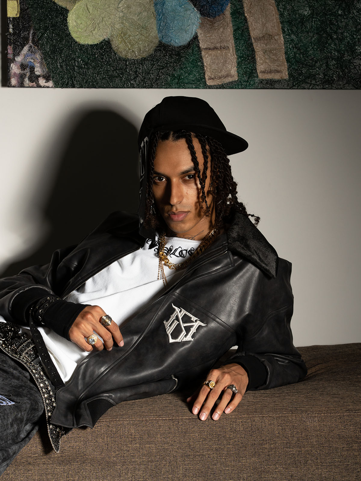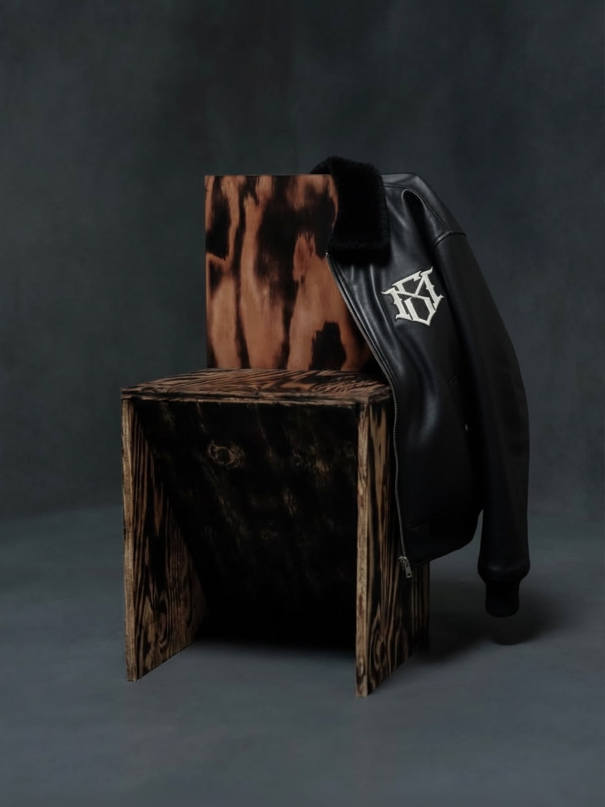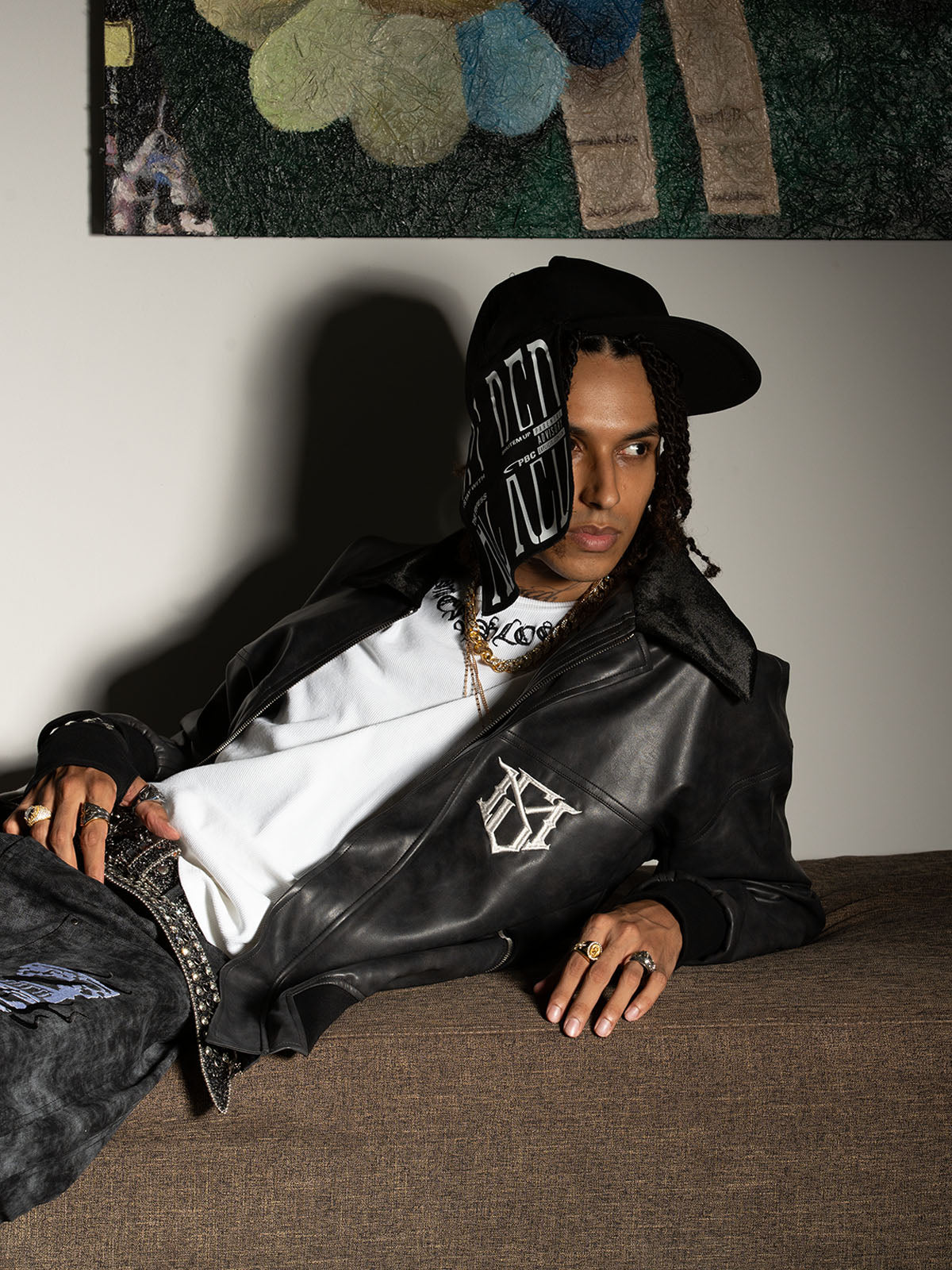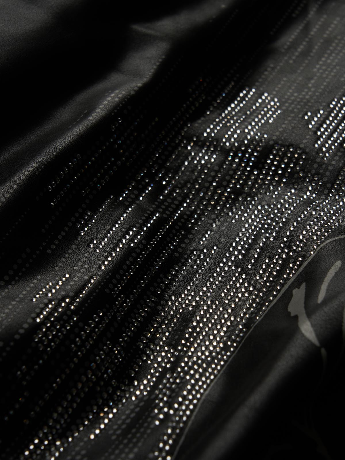 SUPM Fur Collar Rhinestone Pattern Leather Jacket