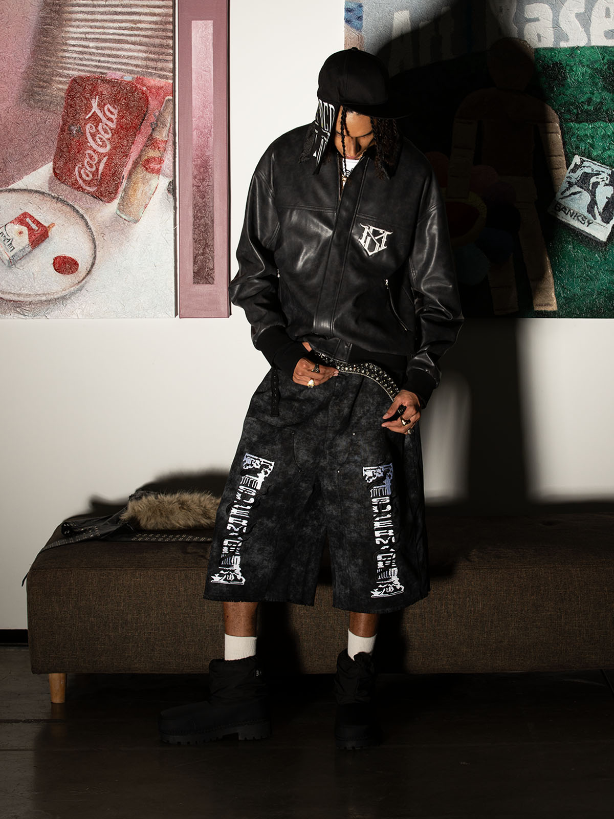 • The distressed shorts with graphic prints offer a trendy and edgy vibe.
