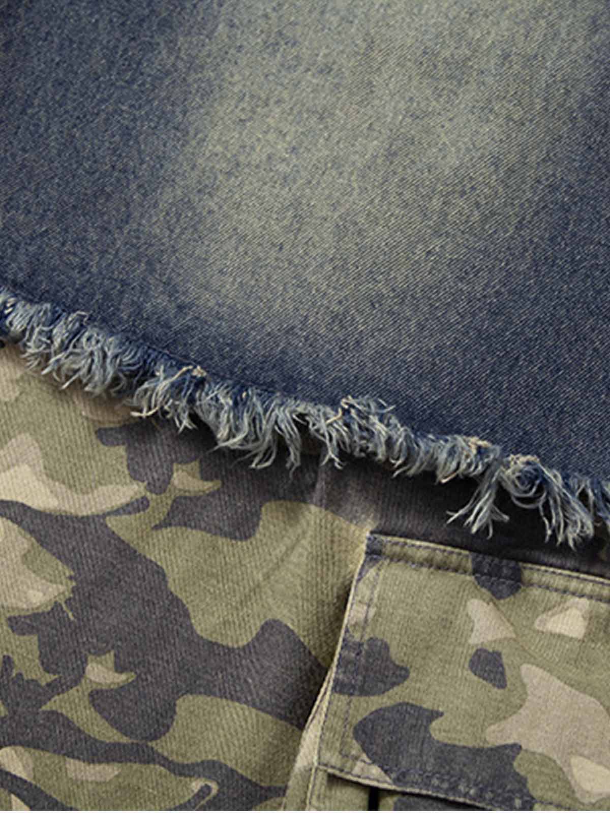 • Detail Features: Distressed Design, Camouflage Patchwork, Embroidered Details