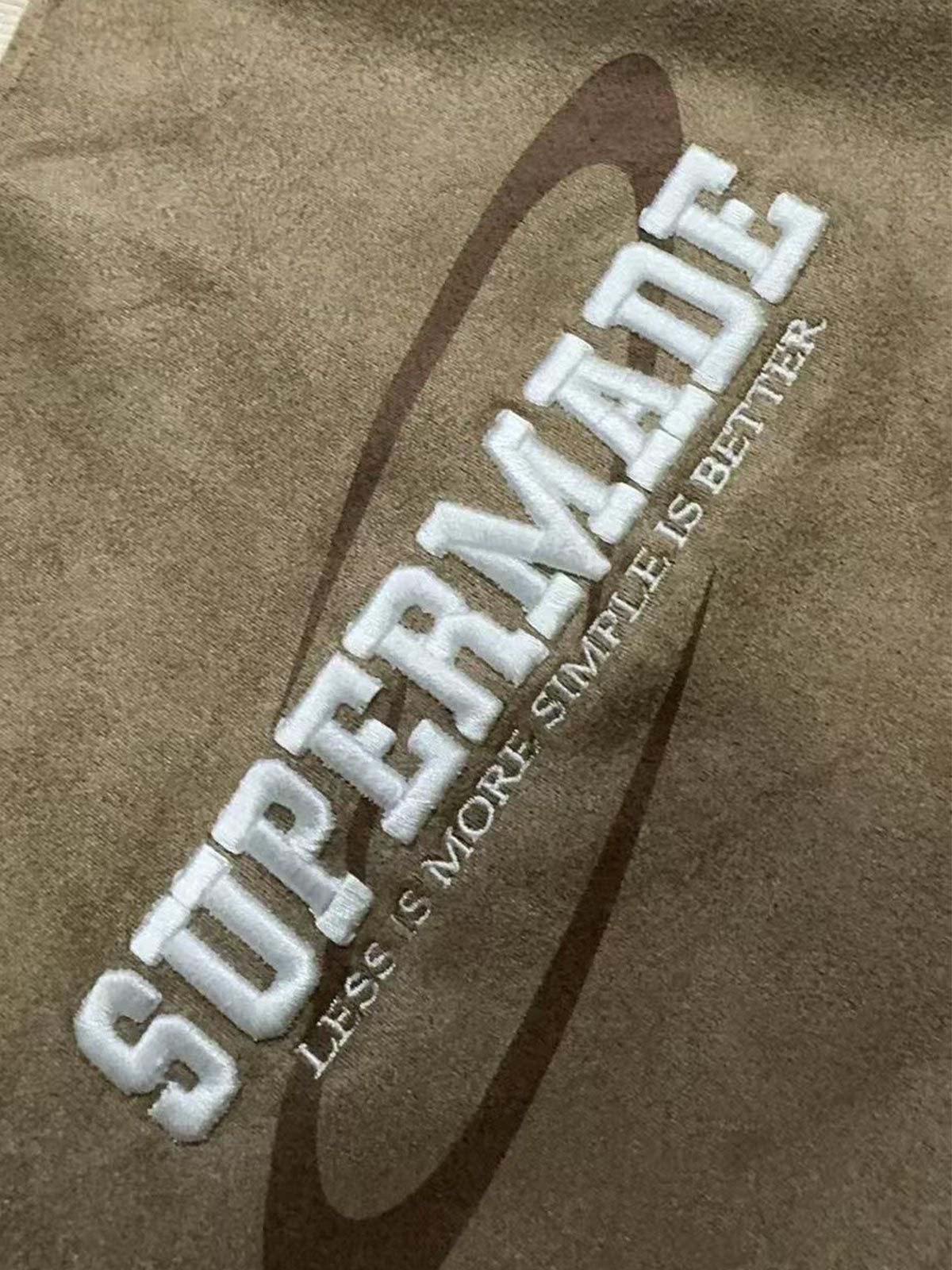 Suede Contrast Color Spliced Letter Embroidery Oversize T-shirt - 2462