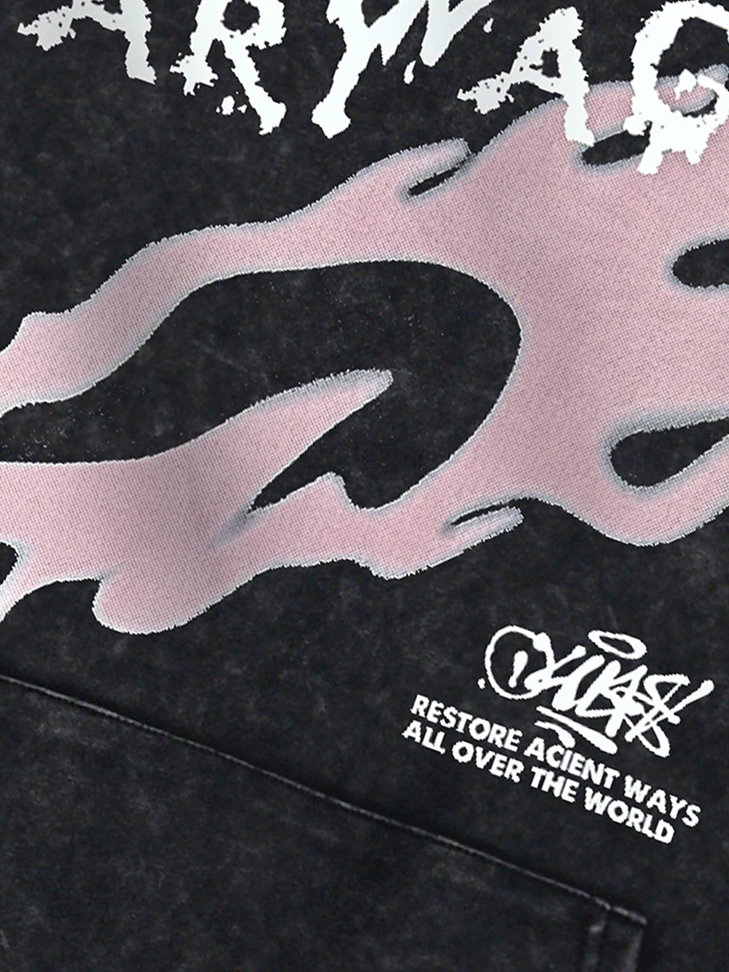 Washed Flame Printed Hooded Fleece Sweatshirt