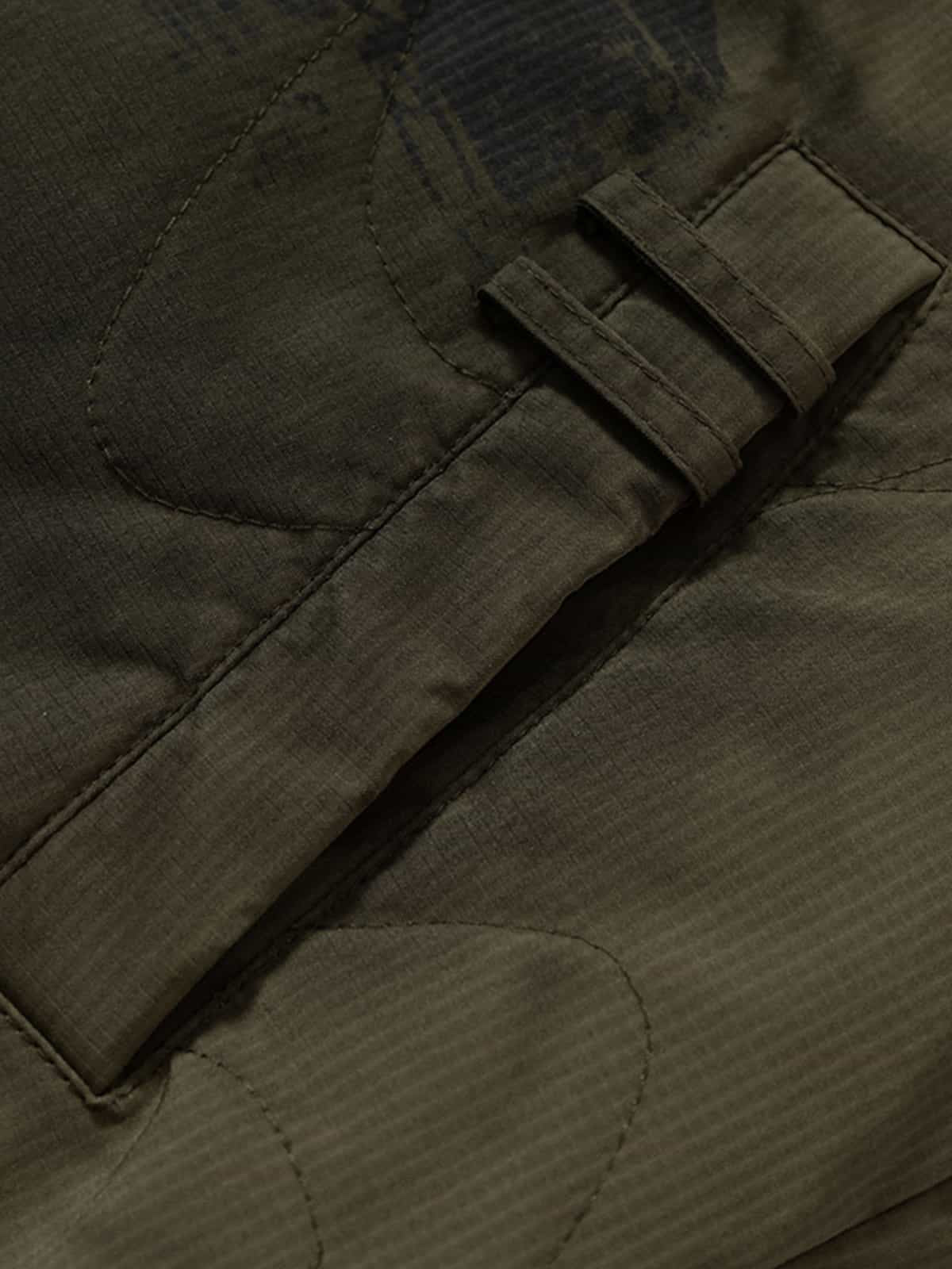 •    Design Elements: Camouflage print, quilted pattern, graphic design on the chest