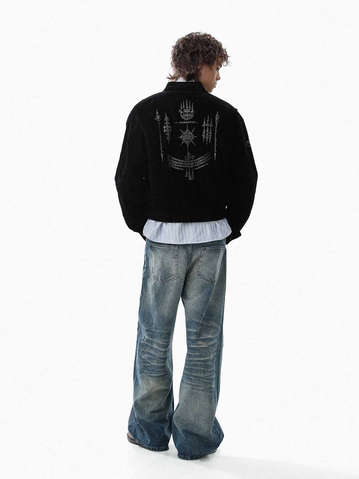 Vintage Suede Embroidered Metal Clip Down Jacket