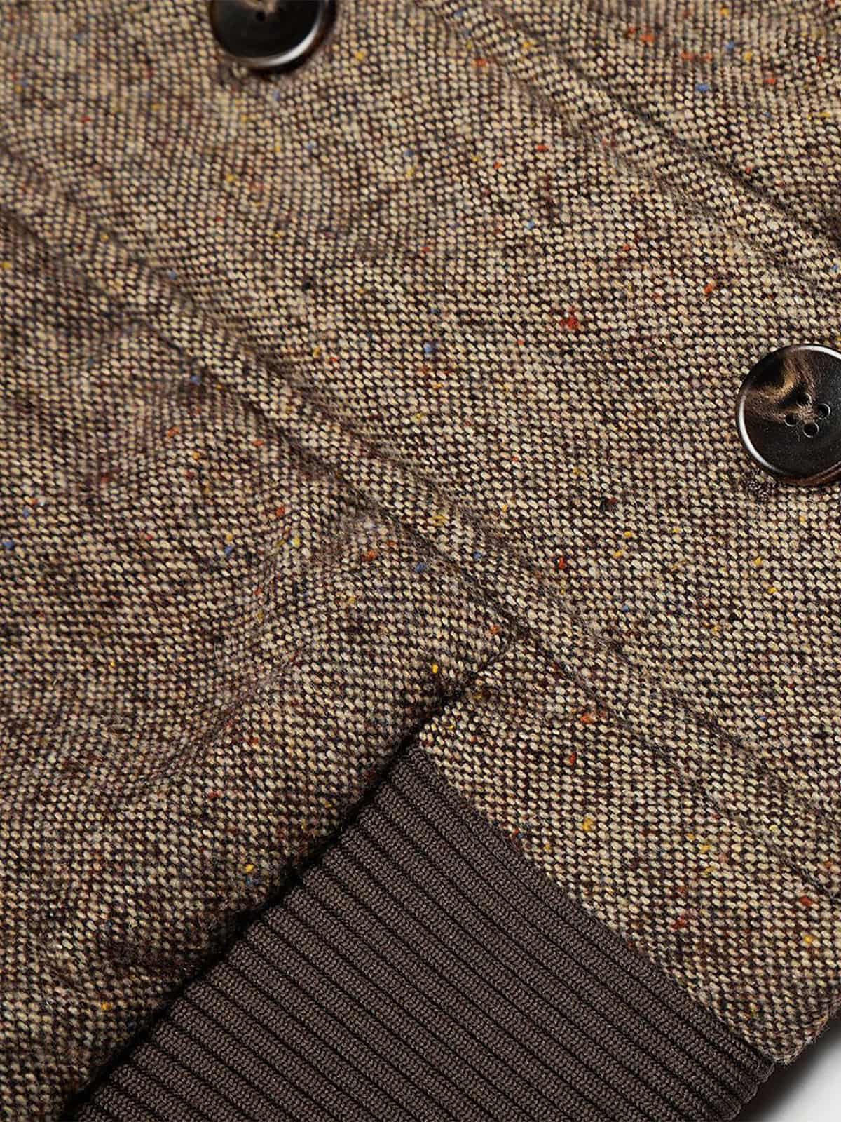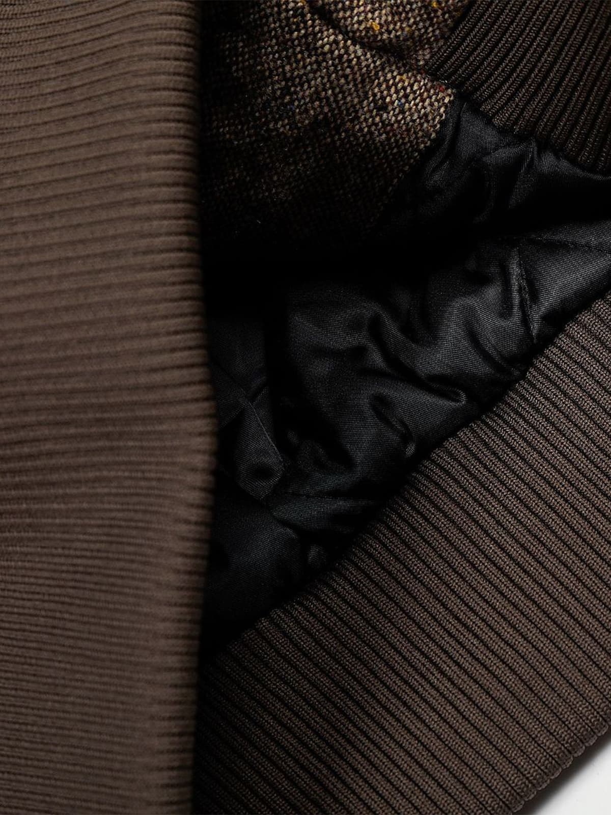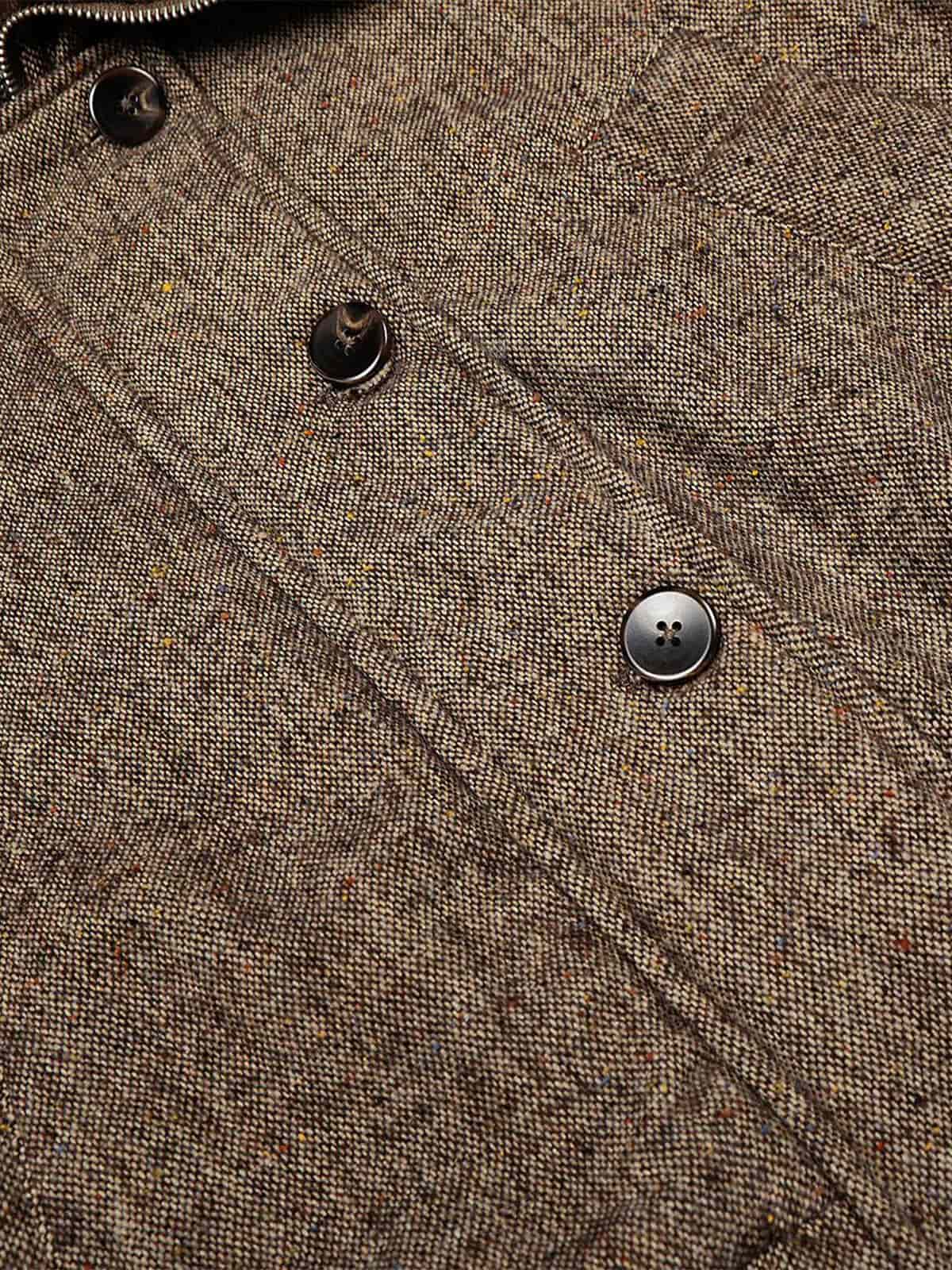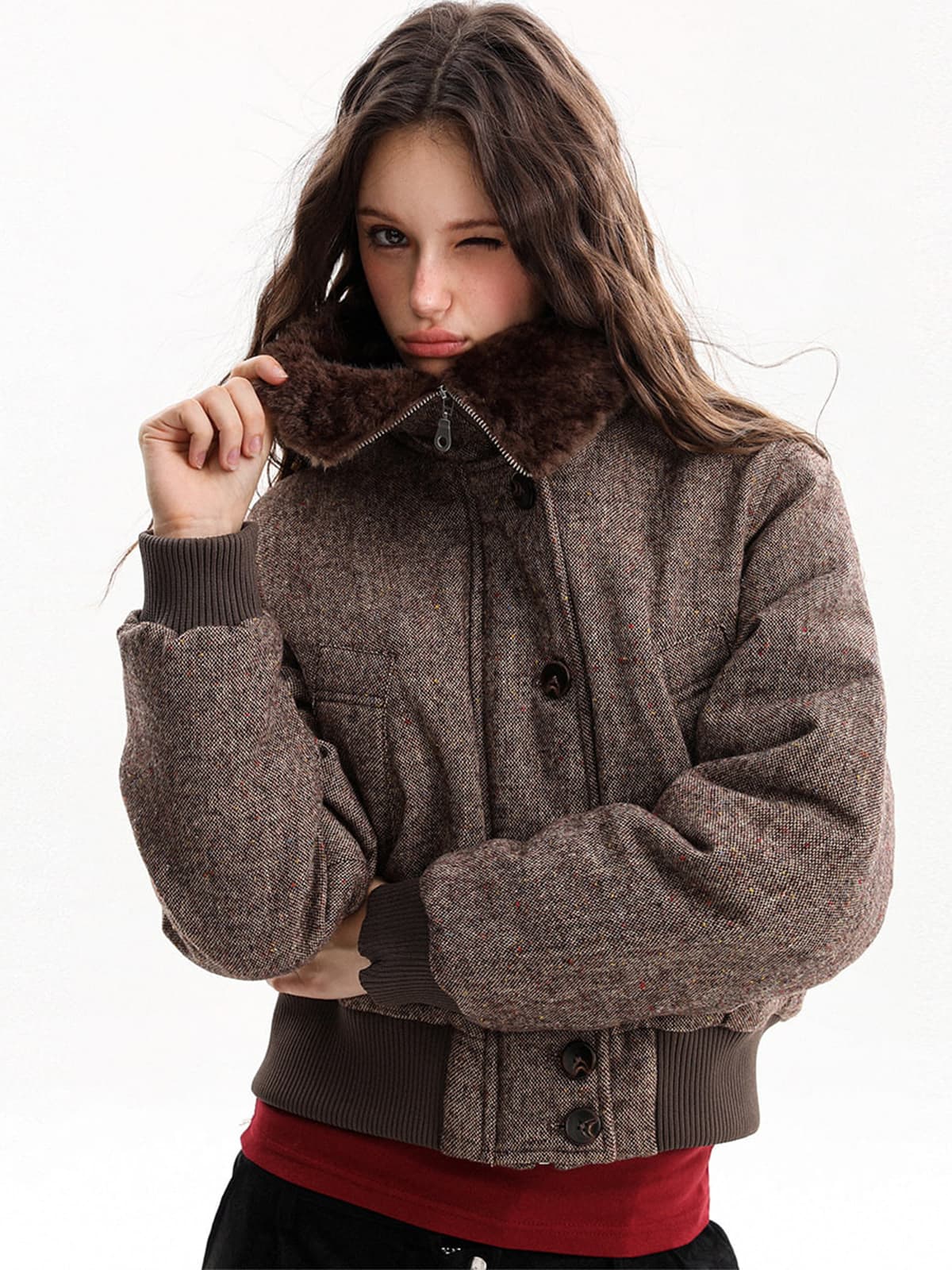 Vintage Tweed Faux Fur Collar Padded Bomber Jacket