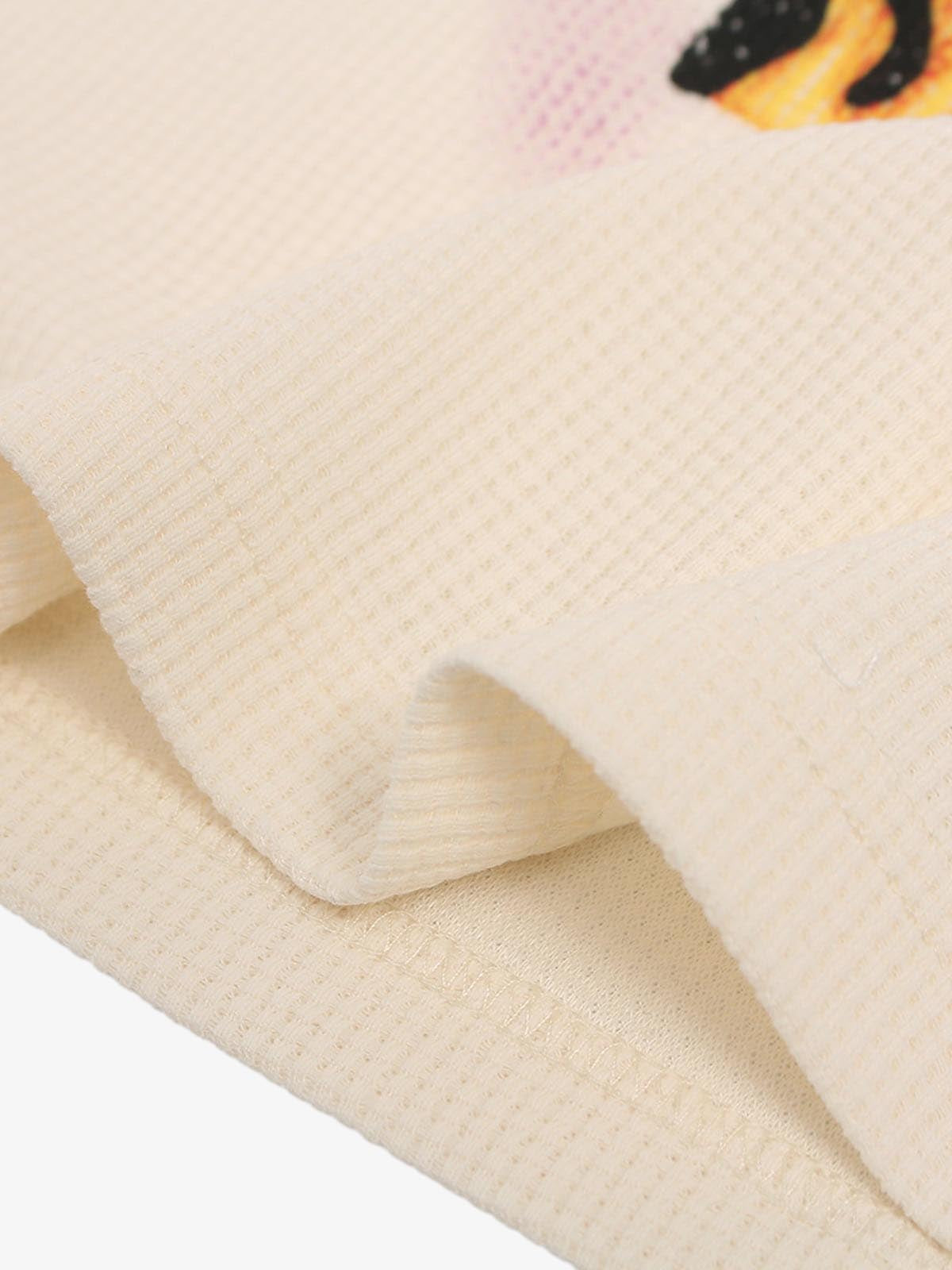 Short sleeve T-shirt crafted from textured waffle knit fabric, offering breathable comfort with a subtle structured feel. Designed with a bold oversized graphic print featuring flame elements and dynamic illustration artwork, creating a strong street and skate-inspired aesthetic. The relaxed silhouette enhances everyday wearability while maintaining statement appeal.
