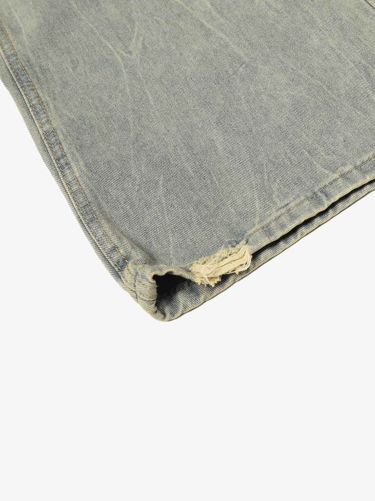 These baggy jeans bring a bold Y2K streetwear vibe with a standout double waistband design. The layered leopard print top creates a striking faux-layered look, adding contrast to the classic denim base. Metal eyelets and studded belt loop details give the piece a raw, vintage-inspired edge. Finished with a heavy washed treatment and subtle whiskering, the ultra-relaxed wide leg silhouette delivers a laid-back fit that stands out in any streetwear rotation.