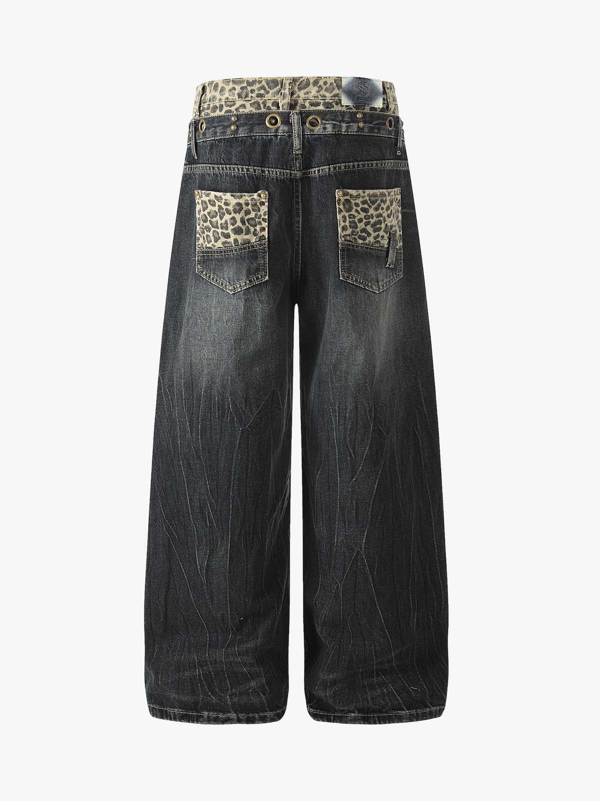 Y2K Double Waistband Leopard Print Wide Leg Jeans